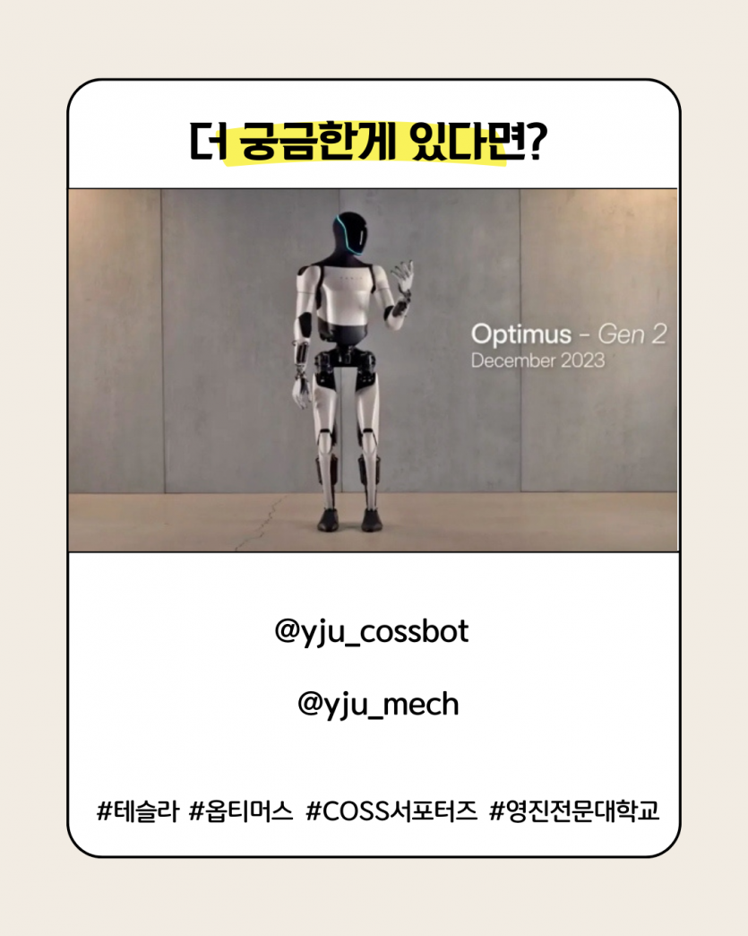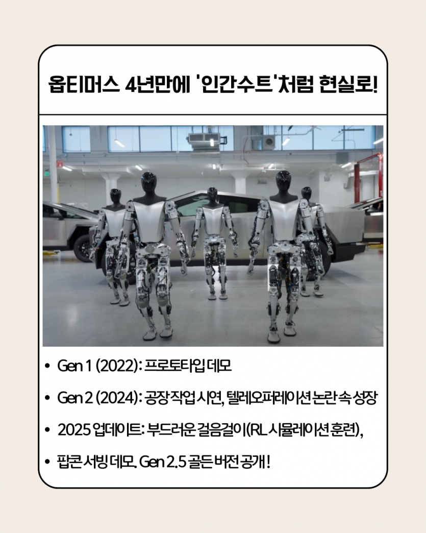 빠른속도로 발전하고 있는 옵티머스 휴머노이드 로봇 페이지 정보 작성자 지능형로봇사업단 댓글 0건 조회 14회 작성일 25-10-27 01:32 목록 본문 관련링크 https://www.instagram.com/p/DQR3E9pkpJ-/?utm_source=ig_web_copy_link&i… 7회 연결 이전글요즘 뜨는 기술 인공지능, 한 눈에 보기 ! 25.10.27 다음글2025 CO-SHOW 25.10.27 댓글 0 댓글목록 등록된 댓글이 없습니다.